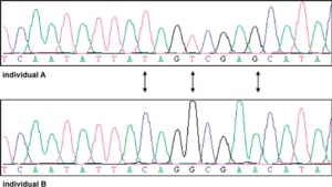 [6] Graph with a pictorial representation of the sequence of genomes in DNA samples taken from two or more individuals: http://www.google.ba/search?q=electropherogram+analysis&hl=sr&tbm=isch&tbo=u&source=univ&sa=X&ei=eG44UZatL4ny4QTt3YDgCA&ved=0CEIQsAQ&biw=986&bih=718#imgrc=BPnqvxiHvhpJ2M%3A%3BlF3XARs49BGtdM%3Bhttp%253A%252F%252Fwww.accessscience.com%252FloadBinary.aspx%253Ffilename%253DYB030170FG0020.gif%3Bhttp%253A%252F%252Fwww.accessscience.com%252Fsearch.aspx%253Ftopic%253DMED%253AFORENS%2526term%253DForensic%252Bmitochondrial%252BDNA%252Banalysis%3B537%3B303